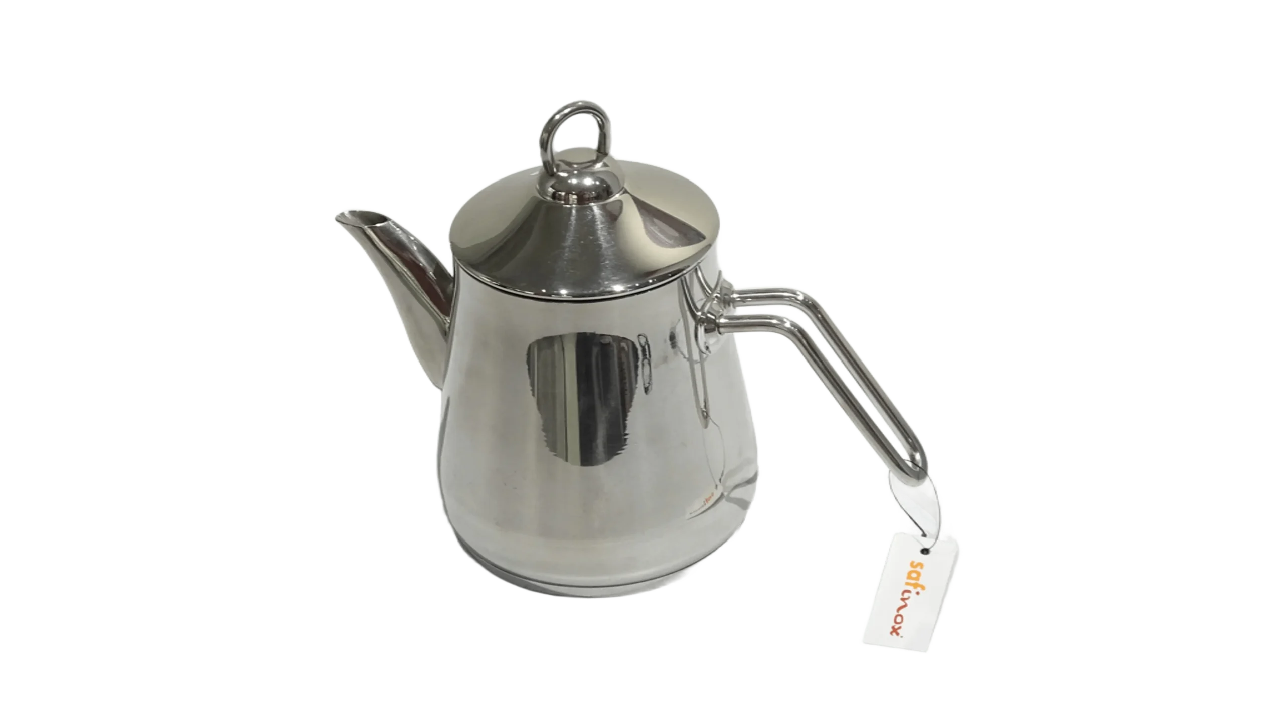 براد شاي مصنوع من الإستانلس ستيل درجة 304 مقاوم للصدأ، سعة البراد 1.5 لتر الشكل الهرمي يساعد علي سرعة غلي الماء داخل البراد مما يقلل من إستهلاك الغاز ،البراد مزود بقاعدة ثلاثية لضمان أفضل توزيع حراري، التصميم أنيق مع يد جانبية مريحة في الإستخدام و بعيدة عن النار ، بوز البراد مصمم بعناية ليتيح عملية السكب بسهولة بدون خروة الشاي خارج الكوباية اثناء عملية الصب