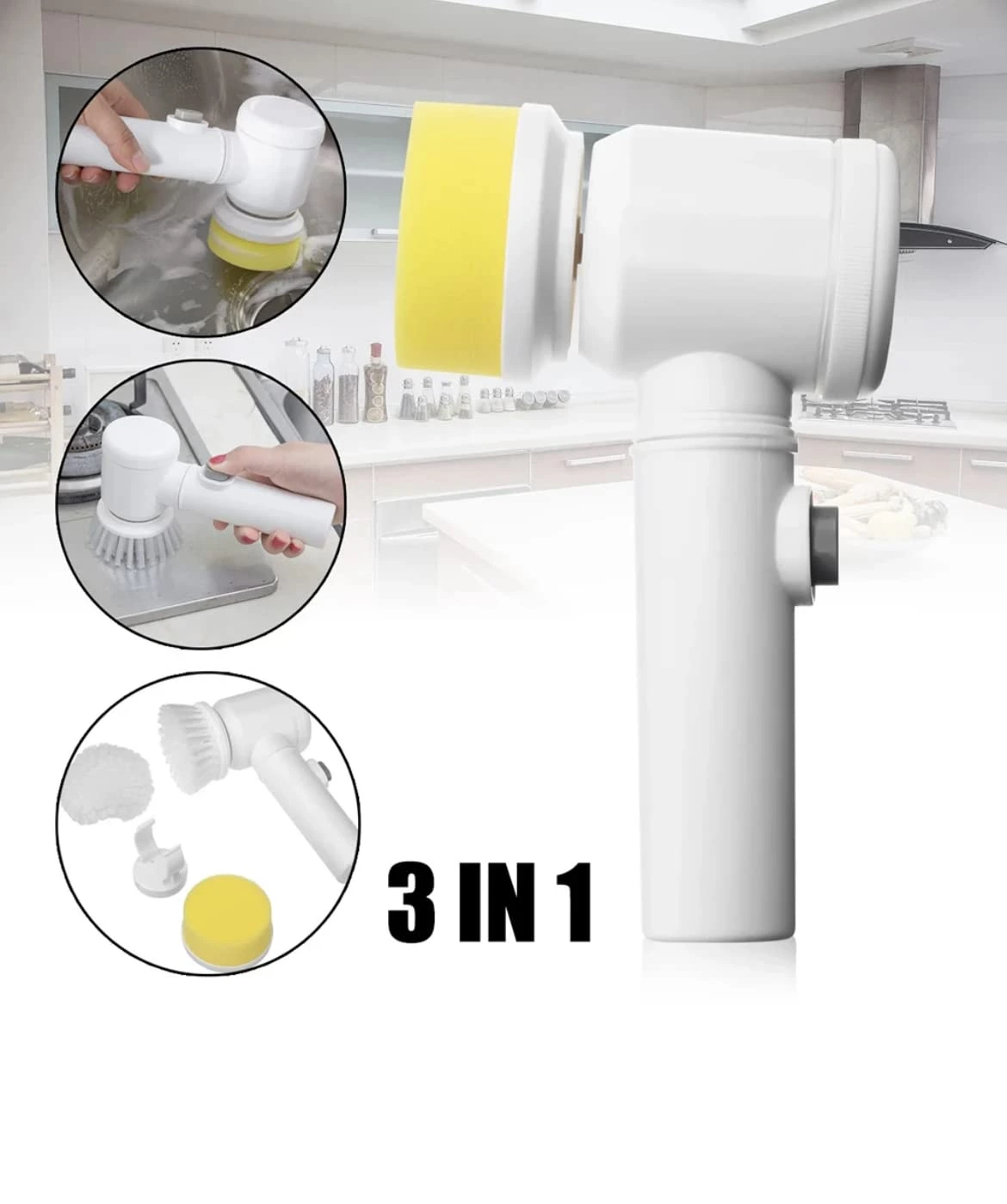 فرشاة تنظيف كهربائية دوارة بـ 3 رؤوس