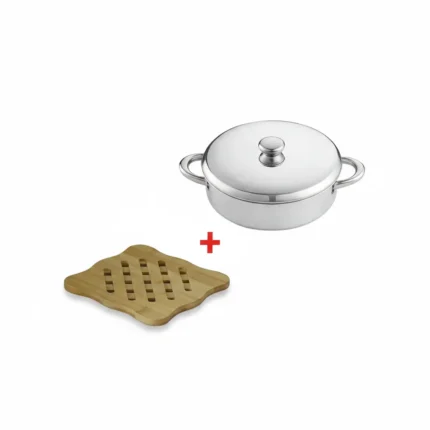 الأهرام صينية فرن ألومنيوم كلاسيك أيادي ستانلس غطا ألومنيوم 28 + قاعدة سخن بامبو مربعة دبل