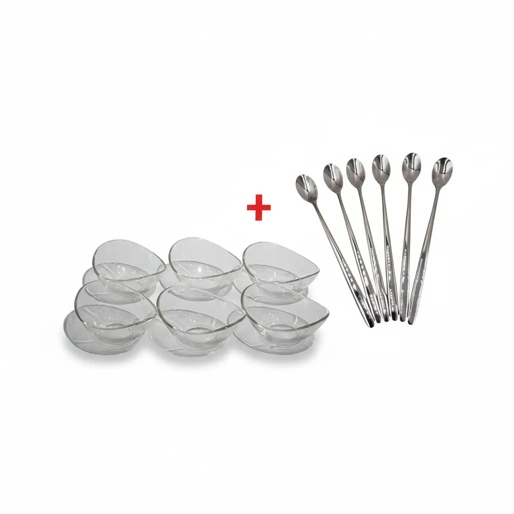 طقم بولات زجاج 6 قطع + طقم معالق حلو بيد مربعة 6 قطع