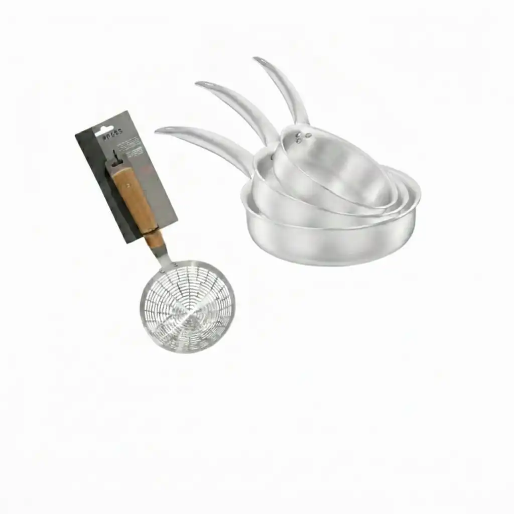الأهرام طقم مقلاية هايبرد ألومنيوم كلاسيك أيادي ستانلس 3 قطع (20/24/26) + مصفاة سبايدر ستانلس دلتا يد خشب